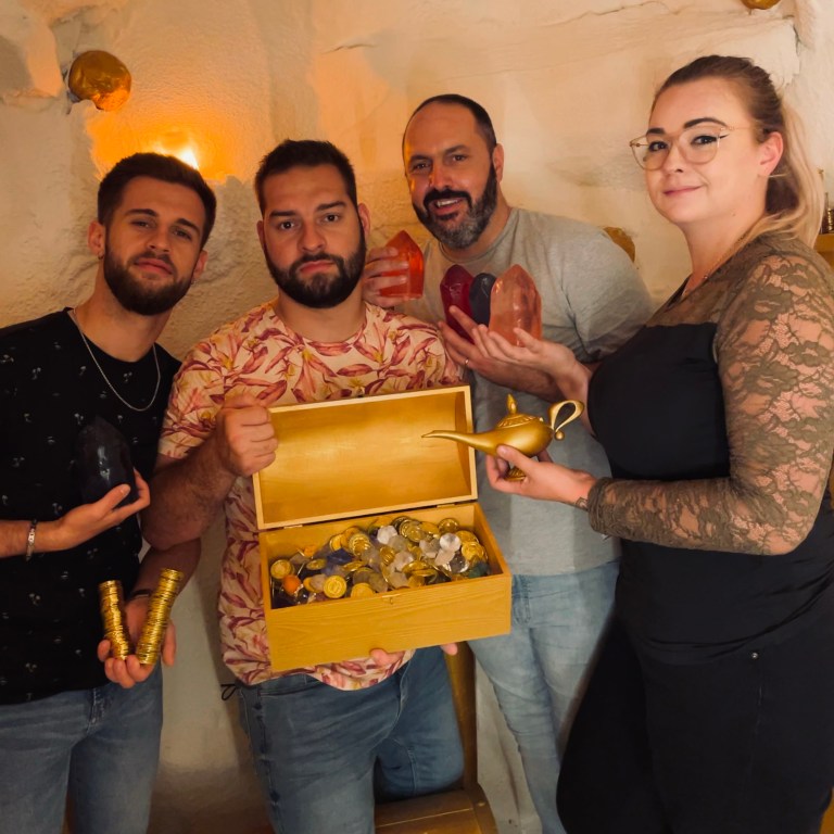Après des années de recherche, nous avons enfin localisé ce qui semble être la fameuse caverne aux merveilles! Seulement, pour nous y rendre, il nous faut un guide, car le désert d’Arabie est une mer de sable qui ne pardonne pas les égarés. L’entrée de la caverne se trouve dans une grotte enfouie sous le sable.